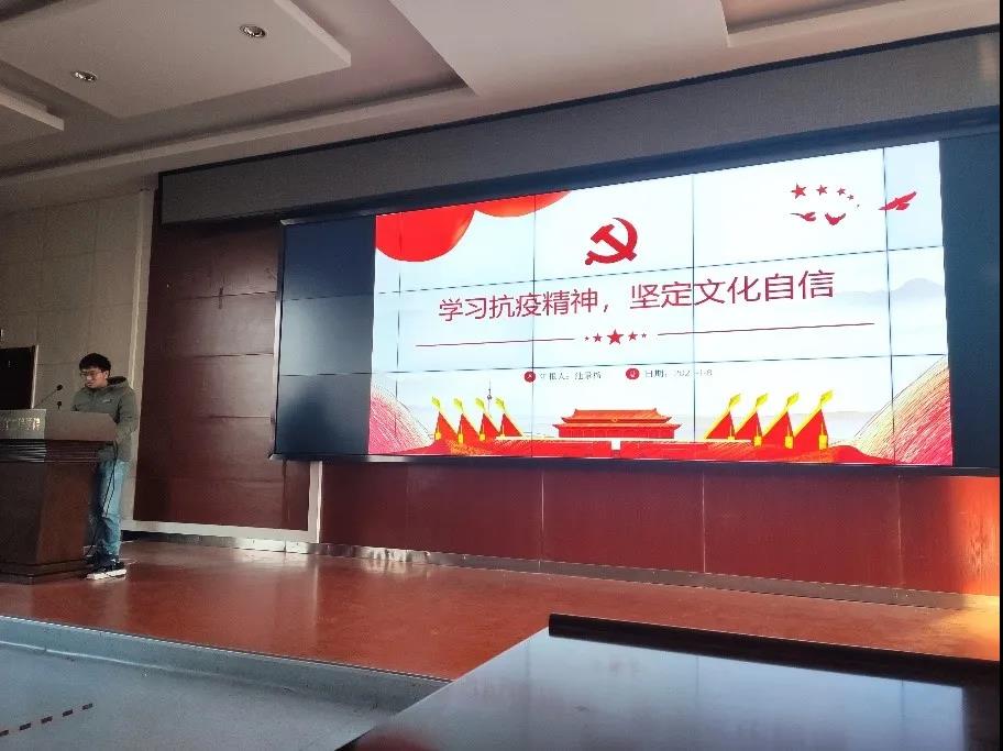 最后是池景榕同志以“学习抗疫精神,坚定文化自信”为主题进行学习分享。他谈到了中国人民在抗击新冠肺炎疫情伟大斗争中凝练形成的“生命至上、举国同心、舍生忘死、尊重科学、命运与共”的新时代抗疫精神,既是中华民族优秀传统文化的继承与发展,也是中国之治的强大精神文化力量的展现。