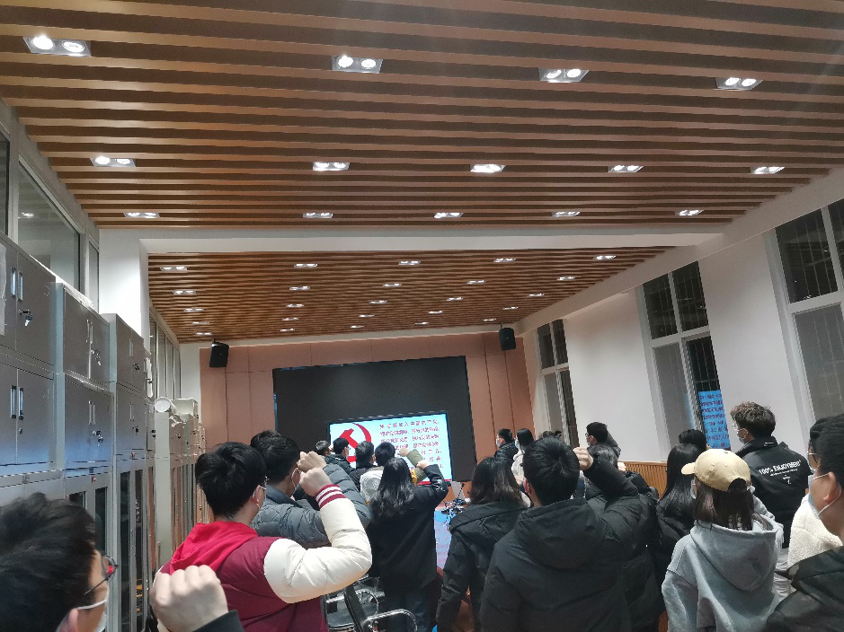 2021年1月12日晚,威廉williamhill研究生水电第一党支部一月份党员大会暨组织生活会于水工楼105会议室顺利召开。本次会议由研究生水电第一党支部书记任家朋同志主持,考虑到支部赶赴三峡提供技术支持的同志以及离校回家的同志,会议采取线上会议和现场会议相结合的方式,按照组织党员集中测试答题、微党课学习新年贺词精神和《中国共产党党员权利保障条例》精神、讨论预备党员转正大会、重温入党誓词、疫情防控教育六大议程依次开展。