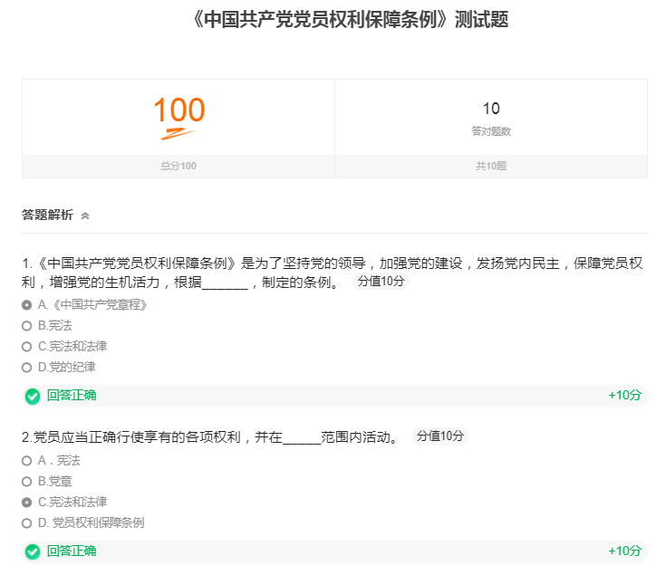 支部结合自主学习、线上测评、专题讲解等形式开展《中国共产党党员权利保障条例》学习。会前支部成员自主学习《条例》内容并完成线上测试题,会上根据测试反馈结果就专题进行详细讲解,帮助支部成员纠察错误,强化《条例》学习效果。通过学习《条例》,再次强调广大党员应切实履行党章规定的义务,正确行使各项权利。