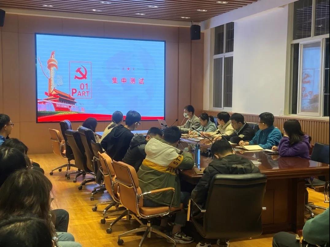 会议第一项,集中测试答题。为祝贺师兄师姐们入职长委相关单位,勉励同学们继续攻坚克难,加强支部党员的理论基础,支部书记任家朋同志组织与会党员通过学习强国APP进行“中华人民共和国长江保护法”专项答题。
