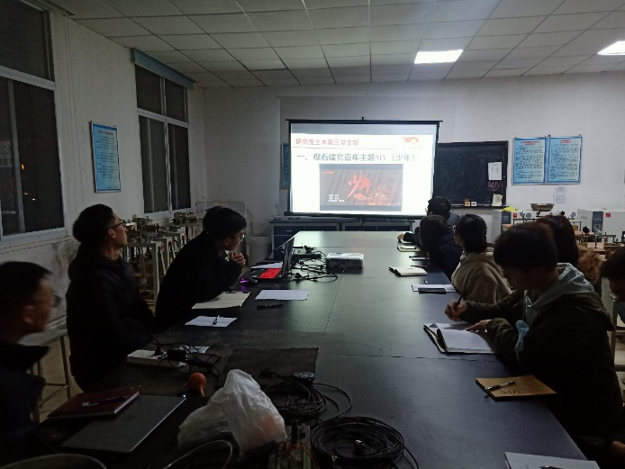 在中国共产党成立100周年之际,支部全体党员共同观看建党百年主题MV《少年》。一段四分钟的视频,展示了百年大党从革命斗争的艰苦卓绝、到建设时期的激情澎湃、再到改革发展的日新月异。这位“少年”一路上“披荆斩棘”,在黑暗中化作一道光明,照亮中华神州大地、照亮人民前行之路。当下,面对百年未有之大变局,百年征程只不过是考验。在奋斗新征程的今天,我们党必将永葆旺盛生命力和强大战斗力去谱写时代新篇章。