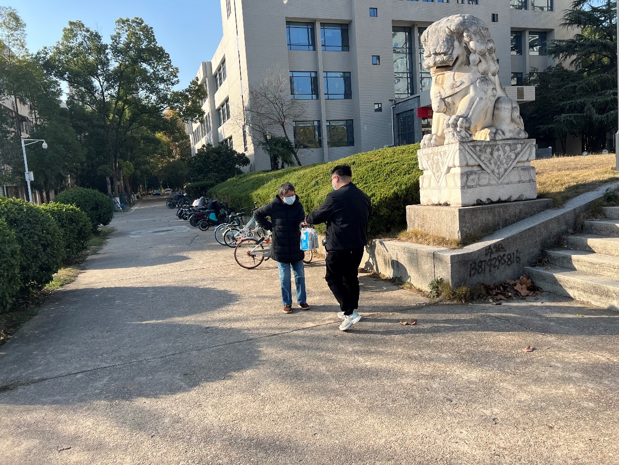 12月17日,学院组织党员突击队,代表学院点对点关心慰问退休教职工。学院党委副书记、副院长徐学军,建筑工程系龙晓鸿、罗浩,数字建造与工程管理系陈健、钟波涛,交通运输工程系徐学才,水资源与水信息科学系孙怀卫,院机关朱文杰、邵太康、丁琪皓等来到喻园小区、东校区和西边高层小区等老同志住处,为老同志们送来防疫健康包。退休教职工宋绍萍在感谢学校、学院关心慰问时表示,突然的改变让老同志们不知所措,学院党员突击队的行动无疑是雪中送炭,让老同志们感受到组织的温暖。