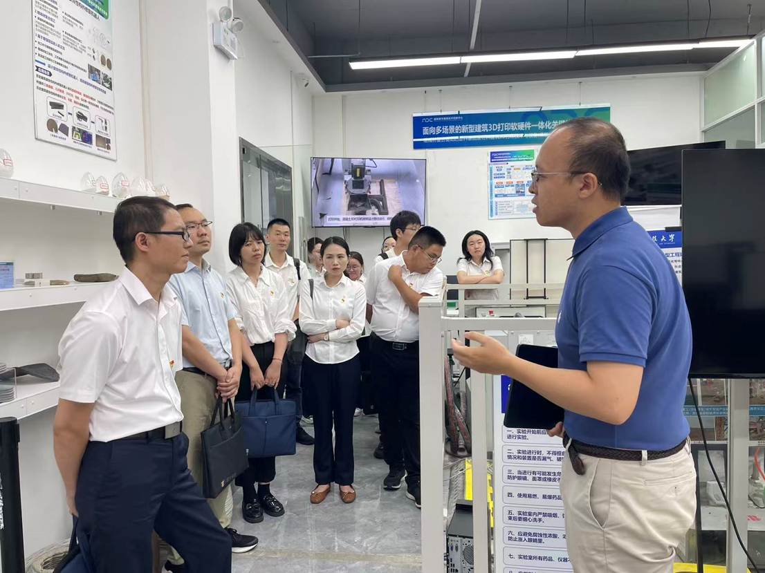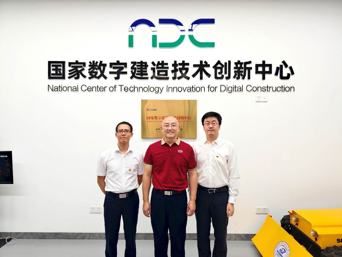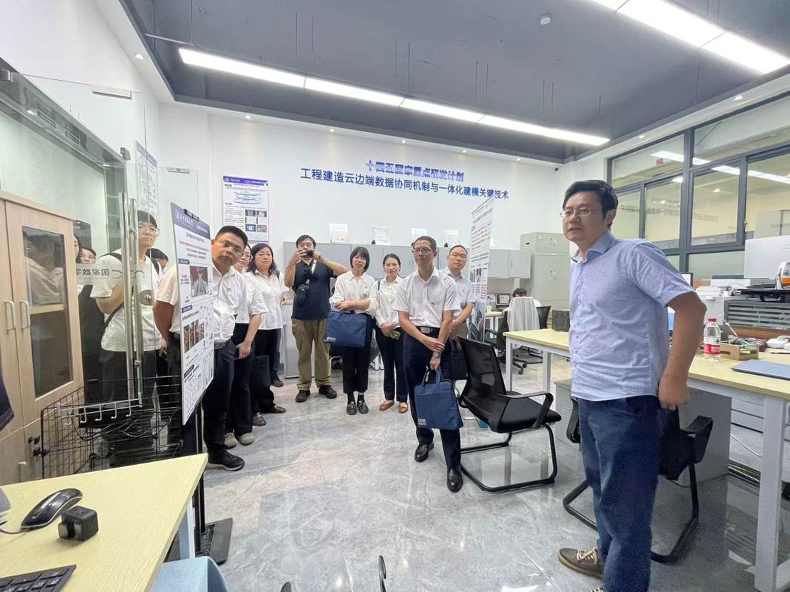随后,与会人员参观了国家数字建造技术创新中心实验室。钟波涛教授、徐捷教授、刘文黎副教授分别介绍了实验室的研究方向与最新成果,展现了华科大在智能建造领域的科研实力。