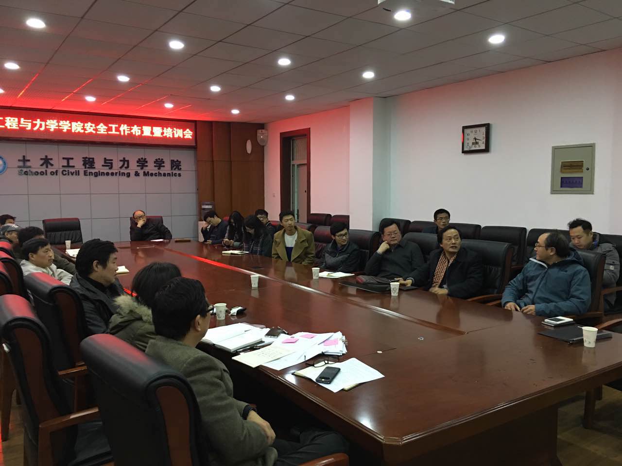 为了进一步增强全院师生消防安全意识,加强师生消防安全教育,提高师生自救能力,推进校园消防安全工作的深入开展,2016年12月15日下午,土木工程与力学学院召开消防安全工作布置暨培训会。学院党委书记李斌参加会议并讲话,会议由学院党委副书记毛勇杰主持。、