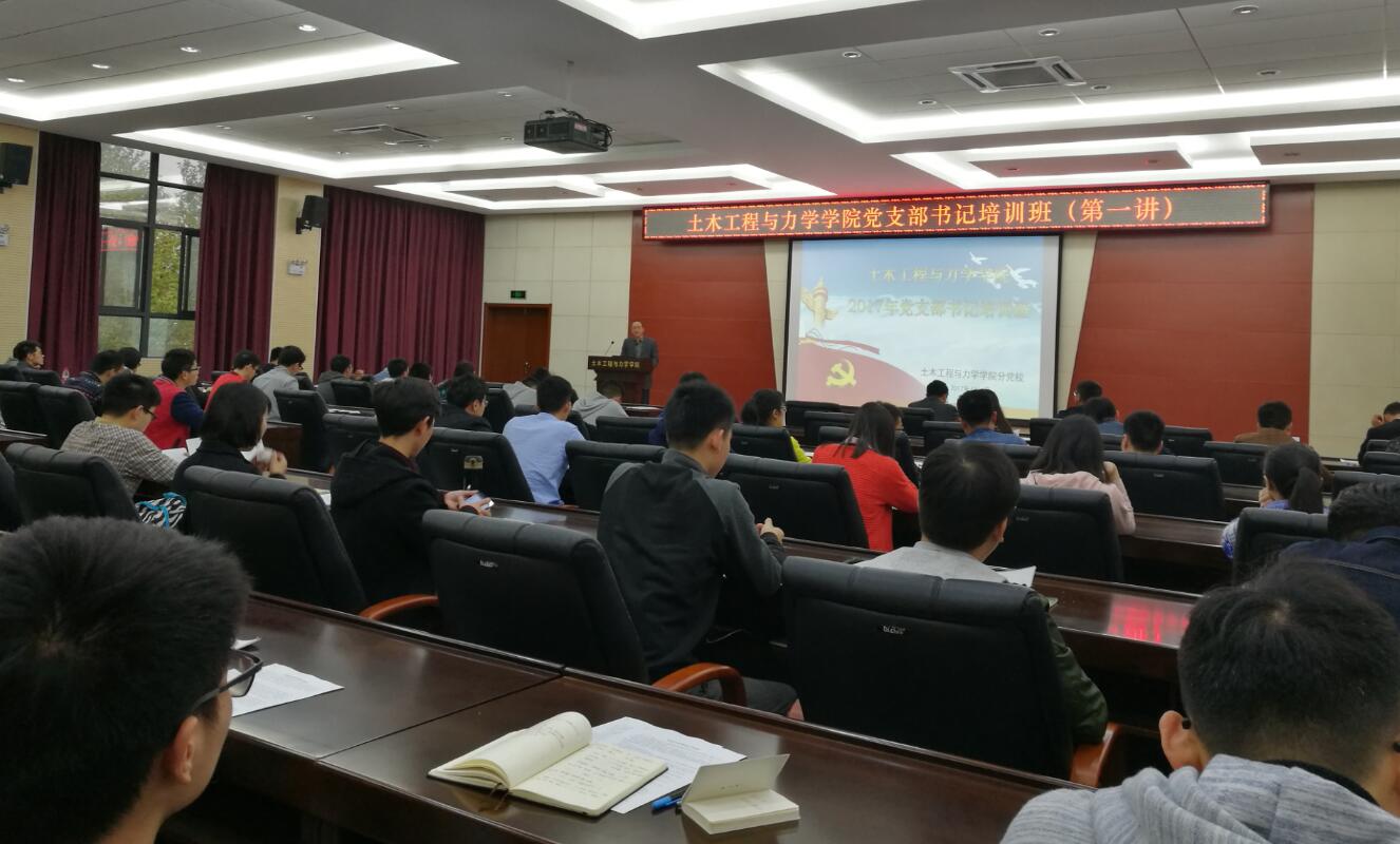 2017年4月6日晚,土木工程与力学学院党支部书记培训班于西六楼报告厅正式开班。培训班旨在落实全面从严治党与“ 两学一做”的精神与要求,强化党支部成员的党员意识,提升学生党员干部的工作能力。