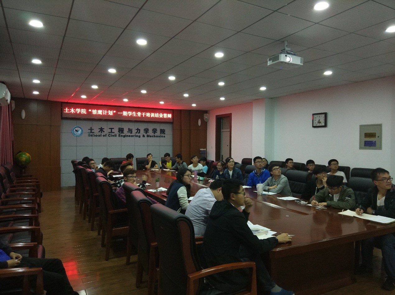 (通讯员:汪正楷)2017年4月23日19:00,土木工程与力学学院分团委、学生会在西六楼3楼会议室举行了土木学院“ 雏鹰计划”一期学生骨干培训结业答辩仪式