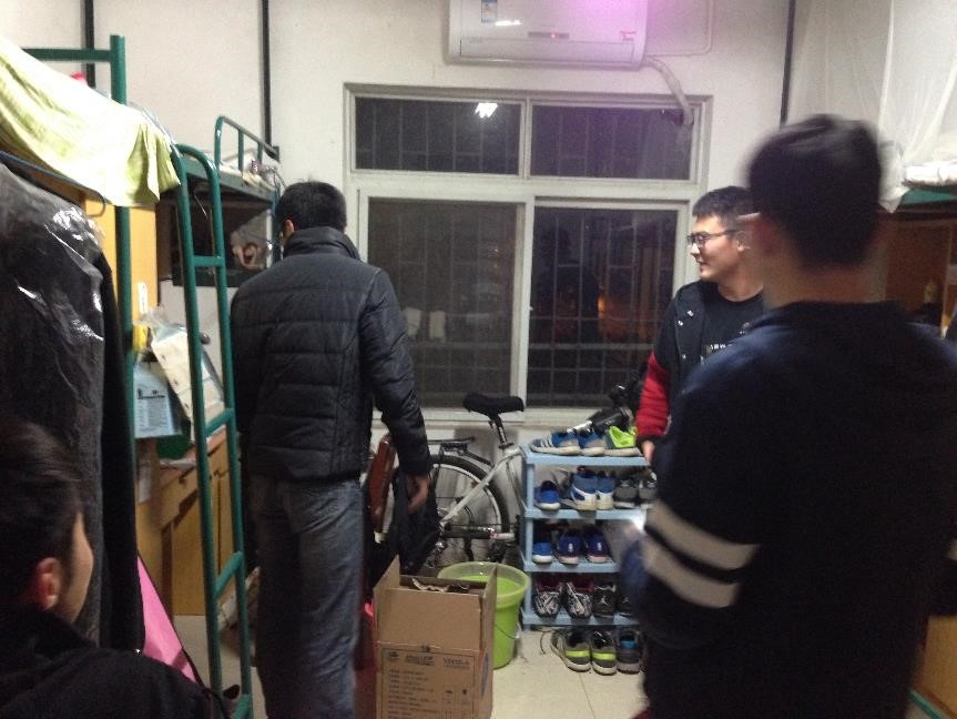 此次检查的人员主要分为男生、女生两批。男生宿舍的检查人员由土木工程与力学学院研究生会成员王政、张晓武、白亚博和严杰组成;女生宿舍的检查人员由周雨薇和陈甜组成。检查时间从2015年11月13日晚上7点开始,分别对各宿舍进行全面的安全检查。