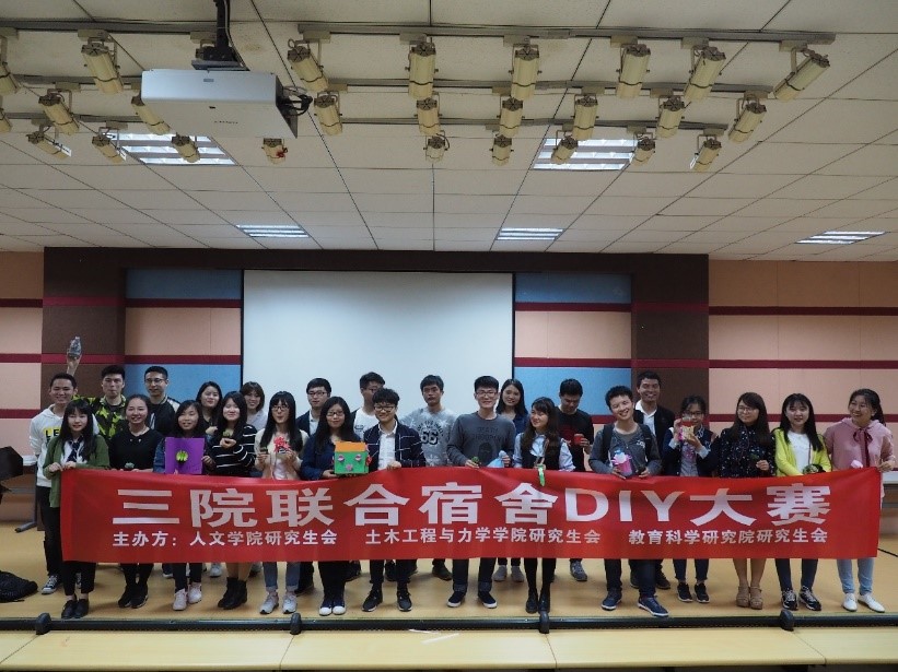 5月7日晚七点,由土木工程与力学学院、人文学院、教育科学研究院三院联合举办的宿舍DIY大赛在研究生活动中心顺利开展。旧物利用,变废为宝。心灵手巧和创意满满的各位同学们们一起制作漂亮的作品,在加强绿色环保意识,增强动手能力的同时,也为我们在日常生活中对身边旧物的改造提供了许许多多创意十足的设计。