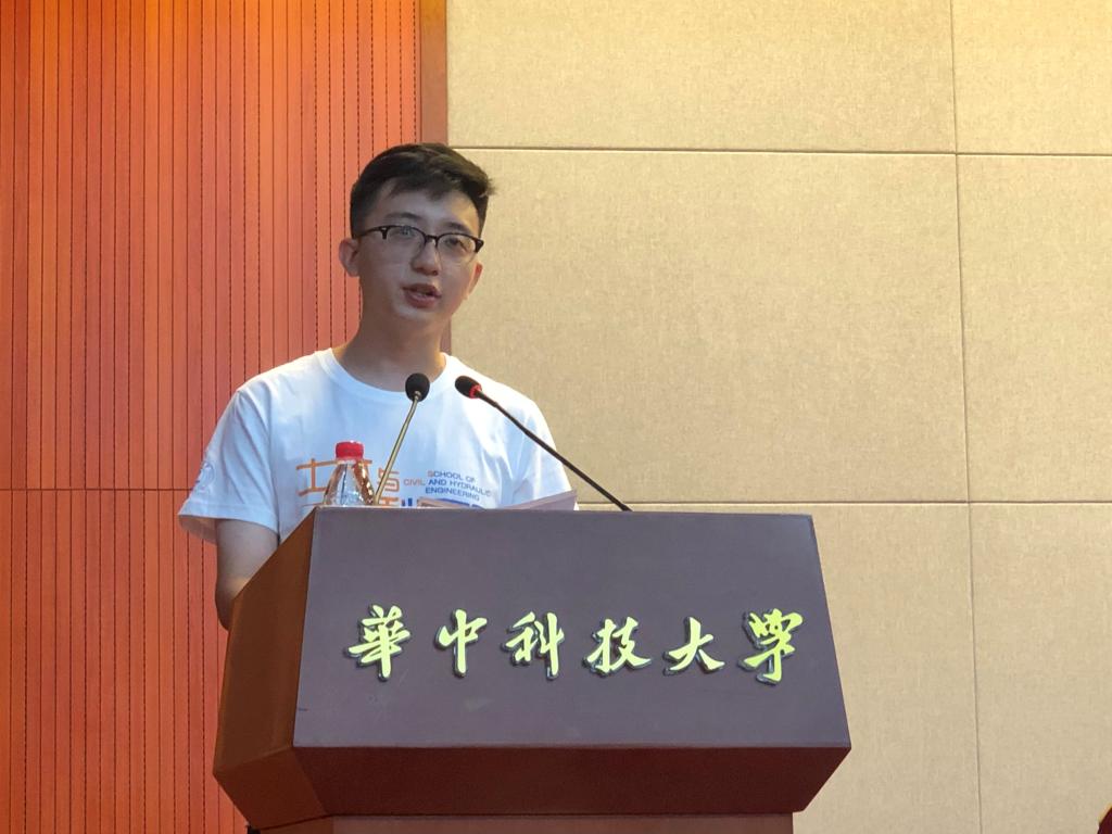 随后,来自工程管理系的老生代表陈睿同学发言。他代表所有的师兄师姐们欢迎新生们的到来。他认为做学术研究就好比“登山”,是一个不断挑战、创新、完善的过程。他与大家分享了我院众多优秀的师兄师姐的案例,期望新生们珍惜青春时光,志存高远,勤学笃行,攻坚克难,做堪当民族复兴大任的时代新人!