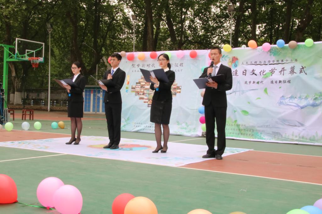 为树立“文化自信”,构建全方位育人体系,发扬土木学院追日精神,彰显土木学子新时代新风貌,2018年4月15日下午,主题为“筑梦新时代,逐日新征程”的第十七届追日文化节在西操场举行开幕式。
