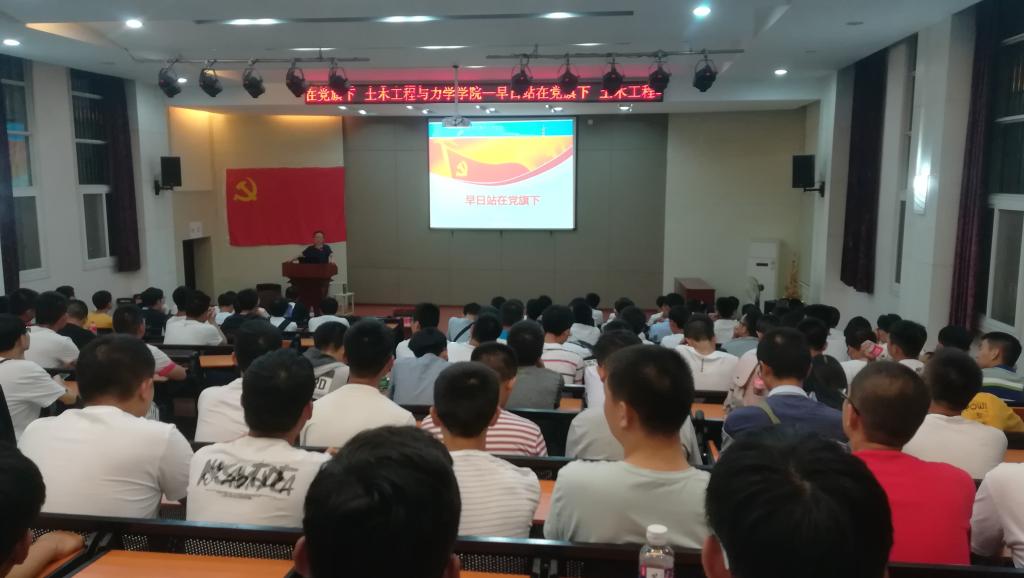 (通讯员 曹震雄)9月8日,由土木工程与力学学院党委副书记毛勇杰主讲的“早日站在党旗下”座谈会在南二楼报告厅举行。