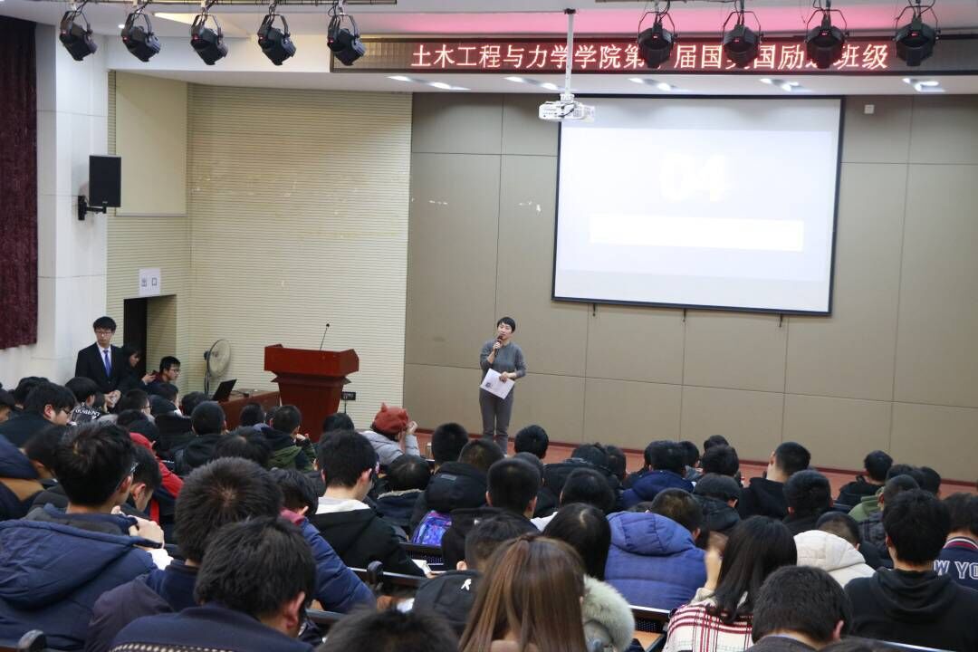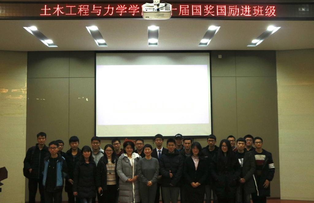 为进一步推进资助育人,帮助学生树立远大志向,激励学生奋发图强,2018年12月21日,土木工程与力学学院在南二楼报告厅举办了第十届国奖国励进班级活动,学院党委副书记何春、资助辅导员丁琪皓参加本次活动。