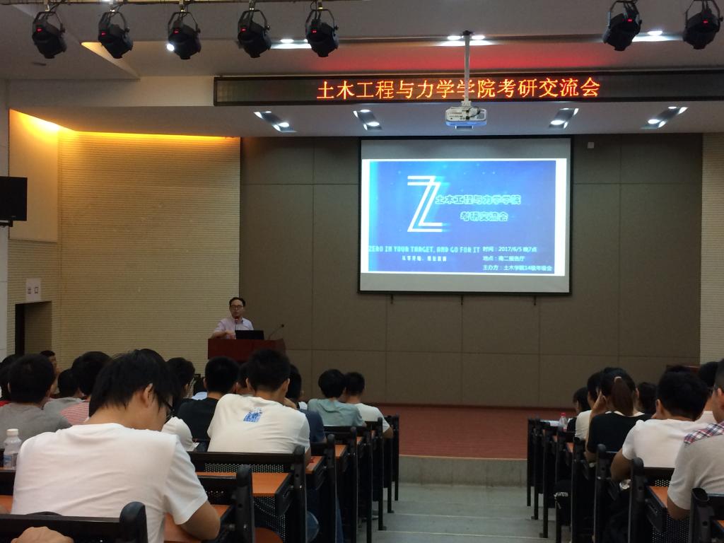 备战2018年考研的号角已经吹响,为给2014级的同学们提供更多的考验信息和经验支持,学院于2017年6月5日19点在南二楼土木学院报告厅举行2014级考研经验交流会。2013级土木工程专业杨希、郑瑞振、邹锦洲、李连峰,工程力学专业张钦博、陈志强,工管管理专业王子豪、宋津明和交通工程专业张昕源、谭泽斌等9为同学应邀参加此次交流会。
