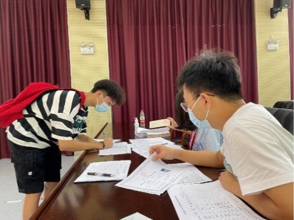 在西六楼五楼报告厅,志愿者们有条不紊地为新生们办理信息核验、双证检查、材料收集、人脸识别等报道手续,学院为新生们准备了开学大礼包,内有校园卡及卡套、研究生手册、研究生证、防疫物品及学院文化衫,提醒各位新生防疫意识不能松懈,在校要做好疫情防护措施。