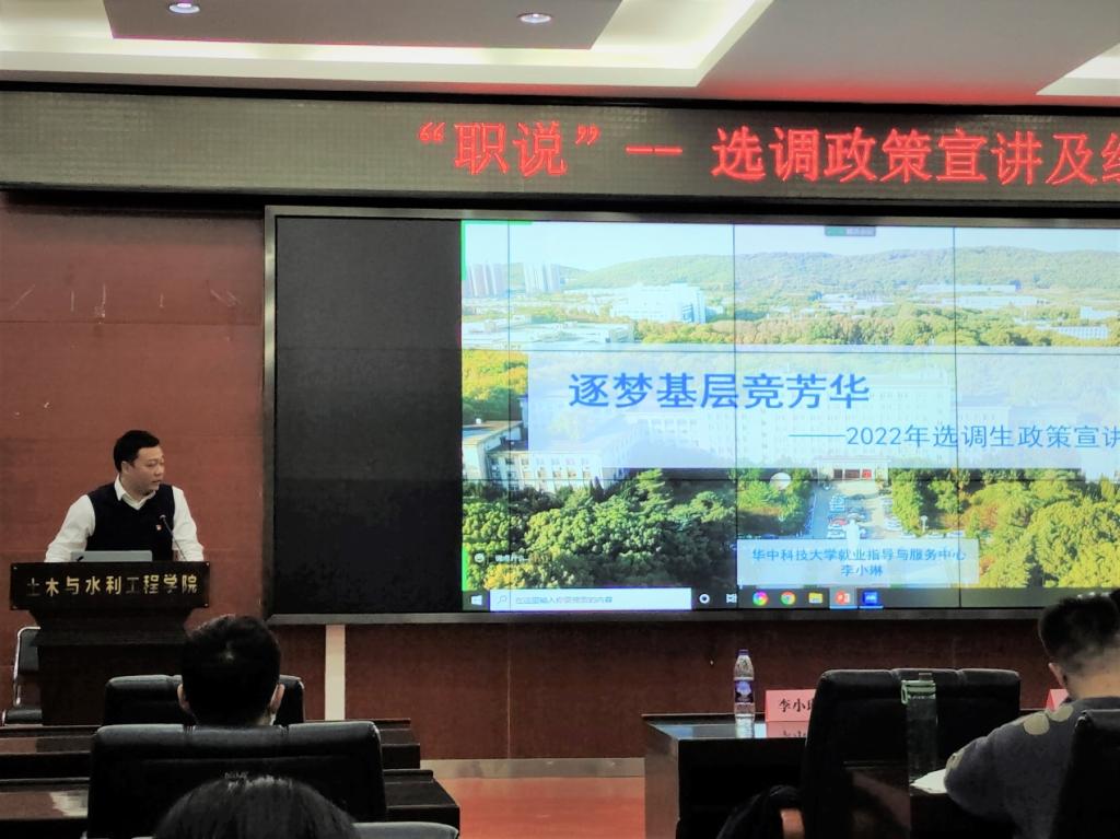 2021年11月11日晚,“职说”—选调政策宣讲和经验分享会在西六楼5楼报告厅圆满举办。本次活动由william威廉中文就业指导与服务中心基层服务与就业管理办公室主任李小琳老师主讲,特邀就职于王超、江博、桂晨林师兄依次分享选调经验。活动当晚,共有现场40余名、线上100余名学院学子参与本次分享会。研究生辅导员邵太康老师参与活动。