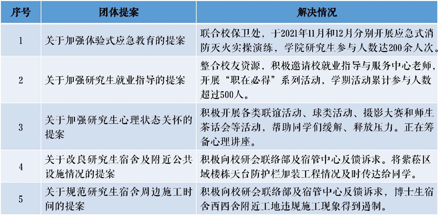 以校第八次研究生代表大会为契机,以需求和问题为导向,将提案处理作为研会活动目标。切实推进学院层面有关应急教育、就业指导、心理关怀的提案得到处理或解决;通过与校研会、宿管中心联系,协力促使学校层面有关提案得到推进。