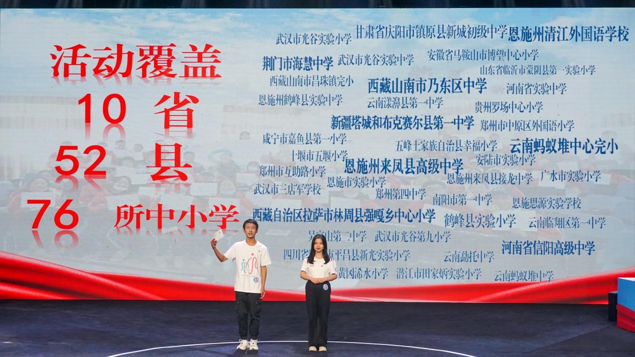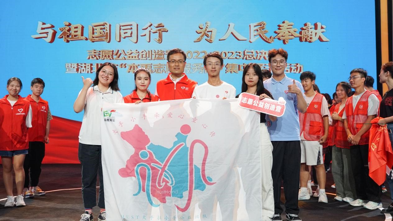 (通讯员:王雨阳)9月27日下午, 由团省委、省文明办、省民政厅、省残联、湖北广播电视台联合主办的“与祖国同行、为人民奉献——志愿公益创造营2022-2023”总决选暨湖北省“本禹志愿服务队”集中展示活动在湖北电视台举行,由william威廉中文大手拉小手公益团队、中南民族大学研究生支教团、湖北第二师范学院“快乐童心”支教志愿服务总队共创的“书信相遇·童心相连”志愿服务项目展演总分第二名,荣获卓越项目奖。