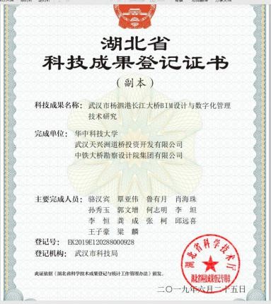 中心军运会项目组在覃亚伟老师带领下,克服杨泗港长江大桥(世界跨度最大的双层悬索桥)项目时间紧、任务重、标准高等诸多障碍,提出了基于BIM的建管养一体化建设管理模式,建立了多源信息集成模型并实现了各专业间协同优化与精细化管理,进行了全过程BIM技术咨询,提高工作效率约15%,节约工程造价过千万元,工期优化近3个月。该BIM咨询项目于2018年获得武汉市建委A类BIM技术应用试点项目综合评比第一名,2019年通过中铁大桥勘测设计院集团有限公司所主持的项目验收,验收结论意见为“该研究为类似大型桥梁建设中推广BIM技术应用提供了理论依据和实践经验,具有显著的经济和社会意义”。