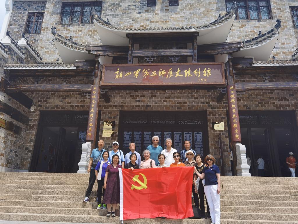 退休党员们在抗战门楼前合影,参观了新四军第五师历史陈列馆,司政大礼堂等处,听当地讲解员讲述了军民团结抗战的革命历史,以新四军五师领导人李先念同志带领的军队,在长达六年之久的时间里,坚守阵地,浴血奋战,保守党的秘密,与当地人民共同谱写了许多抗敌,可歌可泣 、视死如归的英雄篇章。