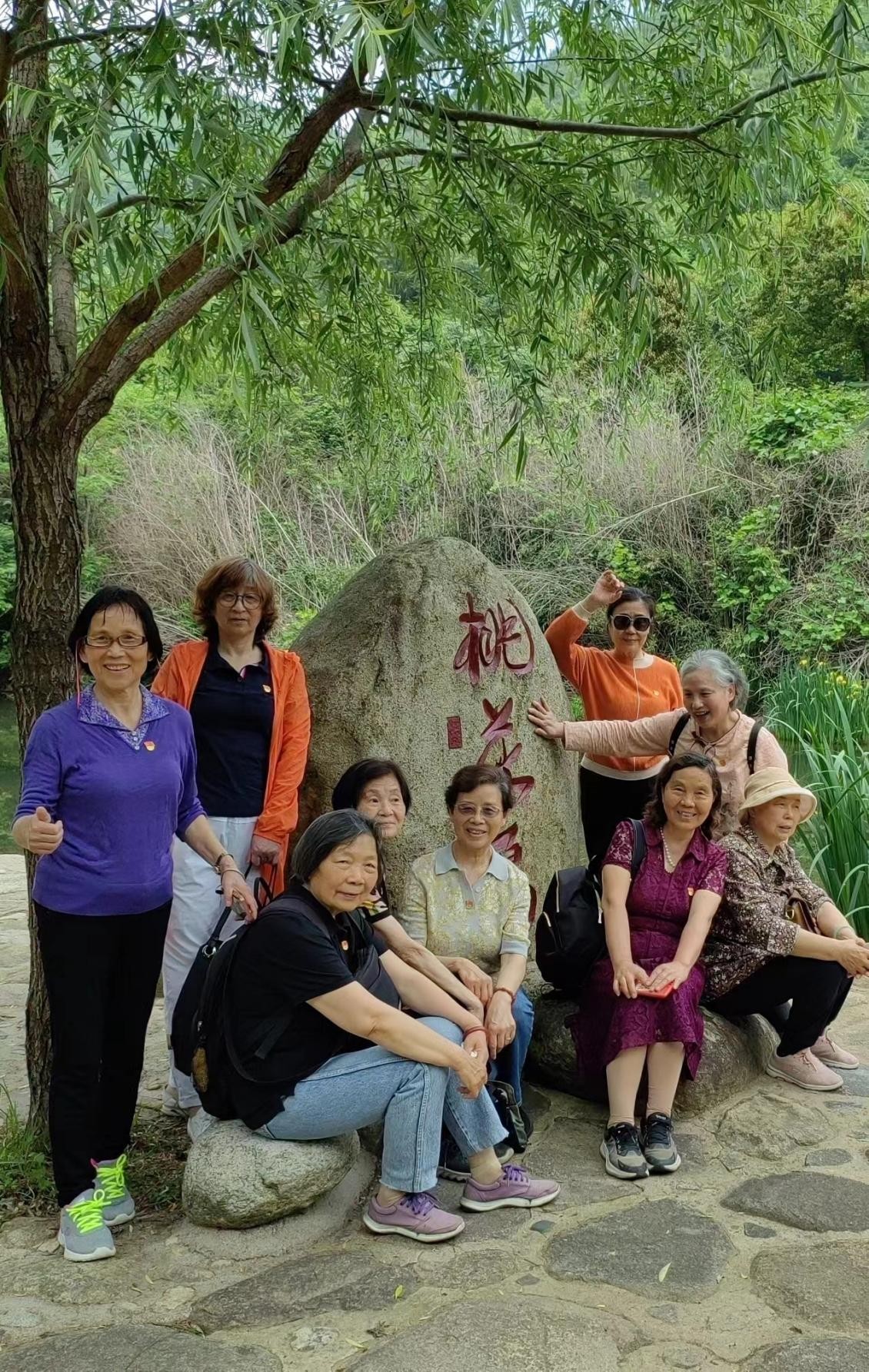 参观完新四军第五师历史陈列馆,退休党员在书记的带领下,在一楼红色经典教育牌前,进行入党宣誓,表达了对革命先烈的敬佩之情。结束参观后,学院党员游览姚家山革命根据地。如今的姚家山风景秀丽,山环水绕,一步一景。进入山中,满目春色撩人,鸟语花香醉人。大家刚从抗战陈列馆出来,脑海里还浮现出军民鱼水情,团结抗日的故事,有老同志感慨:想当年,这里炮火纷飞,战斗激烈,是革命先烈浴血奋战,遵守党的纪律,与敌人进行殊死的搏斗,前赴后继,才有今天的幸福生活,才有今天的绿水青山。