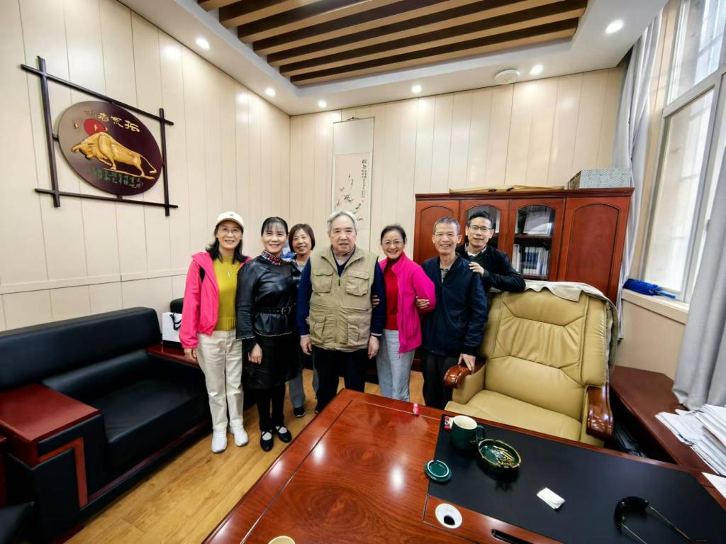 在一间古色古香的办公室里,校友们与张勇传院士的合影成为了聚会的序幕。墙上挂着“老黄牛”精神的牌匾,象征着坚韧与奉献。校友们围绕在张院士周围,他们的脸上洋溢着对院士的敬仰和对往昔岁月的怀念。张院士的和蔼可亲和智慧的谈吐,让在场的每一位校友都感受到了科技知识的力量和探索精神的传承。