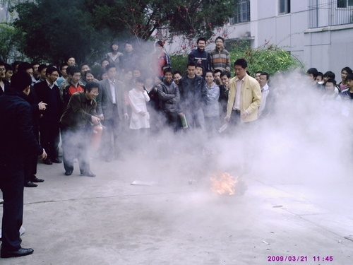 讲座完以后,200多名师生一起来到水工楼下进行了现场消防演习。在两位教官和毛老师的指导下,学院领导、老师和多位同学亲身操作了灭火器。11时左右,演习接近尾声,但还有不少同学跃跃欲试,希望真正掌握一些实用的消防安全技巧。