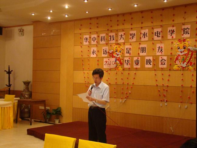 6月23日晚,水电与数字化工程学院2010届毕业生庆典晚会在喻园餐厅隆重举行。中国工程院院士张勇传教授、水电学院院长周建中教授、副院长伍永刚教授、副院长徐学军副教授、党总支副书记刘洋老师、常黎教授、刘昌玉教授、康玲教授、易善桢教授、袁晓辉教授、李衷怡副教授、王金文副教授、刘红岭老师、吴麒老师、粟晓丽老师、莫莉老师来到了庆典现场与水电学院2010全体毕业生共度欢乐时光。
