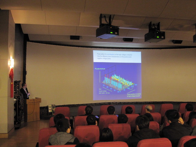 2012年11月5日下午3点,在水电与数字化工程学院三楼会议厅,Dr. Martin Judd为我校师生作了题为“UHF Partial Discharge Diagnostics for High Voltage Equipment”的报告。李朝晖教授主持了报告会,徐学军副院长、叶鲁卿教授等教师和学院相关研究方向的博士、硕士研究生参加此次报告会,整个报告厅座无虚席。