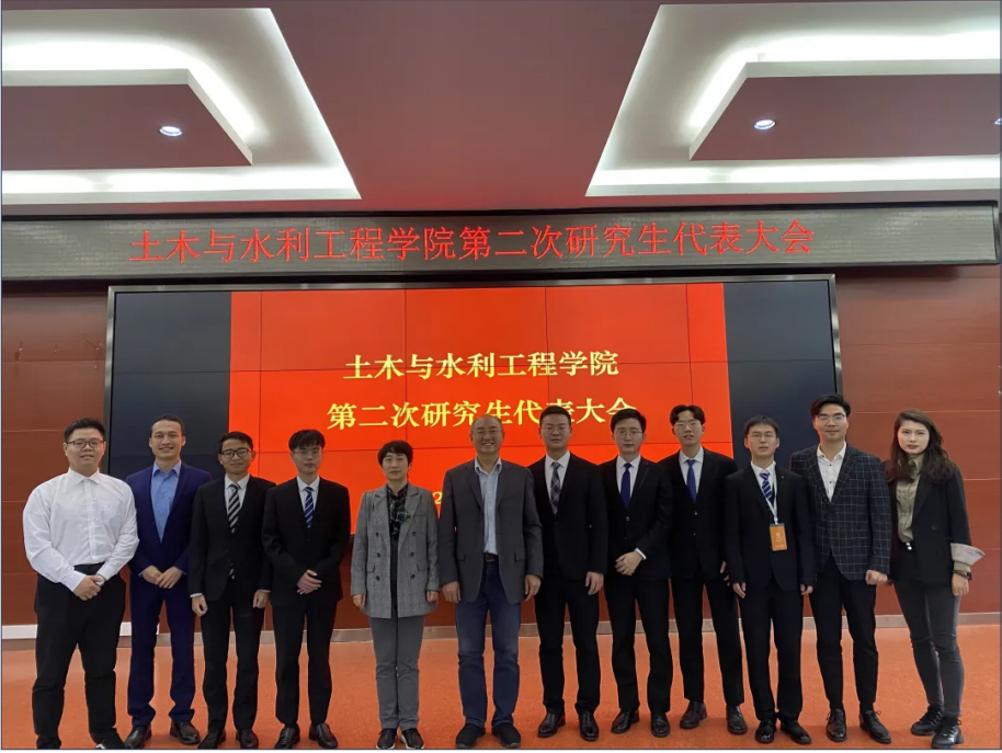 学院第一届研究生会主席团成员方思宇代表我院第一届研究生向大会作提案工作报告。提案工作是同学们行使民主权利的重要途经,大会收集到全院共48件有效提案,内容涉及安全教育、心理健康、职业发展、学业学术、生活服务等方面,切实反映了同学们的迫切需要。随后,李斌老师和何春老师为第一届研究生会主席团颁发聘书,并合影留念。