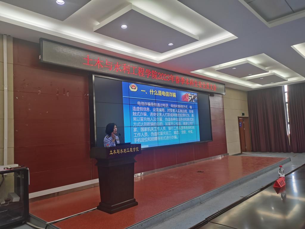 喻家山派出所一级警长、全国优秀人民警察涂小红警官进行了防诈骗主题教育。涂警官介绍了贷款诈骗、刷单诈骗、裸聊诈骗、冒充公检法诈骗等八种大学生群体高发的电信网络诈骗手法,结合真实案例对不同的诈骗手法进行分析,提醒学生们不可贪图小便宜,要提高警惕,牢记防诈骗“十二个凡是”。