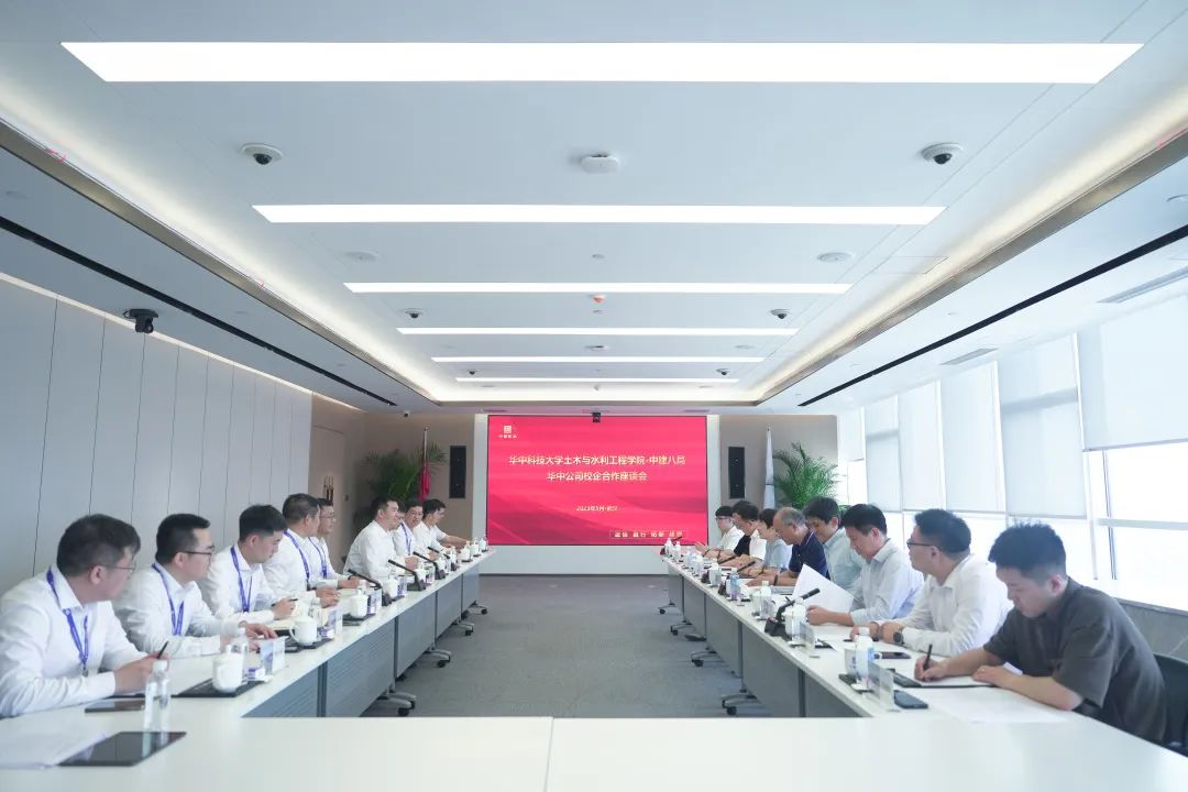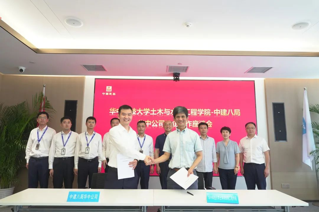 5月29日,为进一步推进校企深度合作,充分发挥校企各自人才和资源优势,全面助力双方事业高质量发展,威廉williamhill领导老师走访中建八局华中建设有限公司开展校企合作座谈会暨签约授牌仪式。威廉williamhill党委书记李斌,院长刘华北,党委副书记何春,建筑工程系党支部书记龙晓鸿,副主任沈文爱,辅导员邵太康、丁琪皓、乔毅帆,中建八局华中公司党委书记、董事长徐玉飞,党委副书记、总经理刘洪杰,副总经理余利彪,副总经理白居,助理总经理徐忠华,副总工程师张磊,人力资源部和党群工作部等相关负责人参加会议。