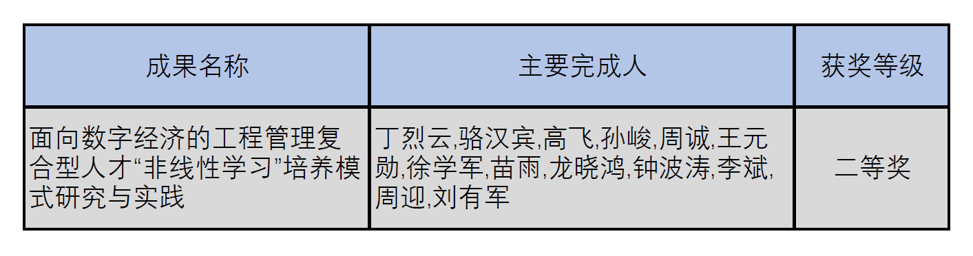 成果名称:面向数字经济的工程管理复合型人才“非线性学习”培养模式研究与实践