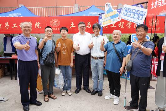 8月29日上午,校长尤政来到紫菘迎新现场。校长非常关心新生的入学状况,详细的询问了迎新志愿的布置情况,了解了新生报道期间是否存在困难,勉励新生勇于开拓、珍惜韶华。随后,尤政校长与学院书记、院长和报道的新生及家人留下珍贵的开学合影。