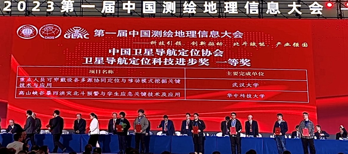 2023年11月8日至10日,首届中国测绘地理信息大会隆重召开,大会由自然资源部指导,中国测绘学会、中国地理信息产业协会和中国卫星导航定位协会联合主办,6000多名测绘地理信息以及水利资源环境应用等相关领域工作者参会。会上,中国工程院王家耀院士代表大会宣布颁奖决定,我院刘懿副教授团队牵头完成的科研成果“高山峡谷暴雨洪灾北斗预警与孪生应急关键技术及应用”获得2023年度卫星导航定位科技进步一等奖。