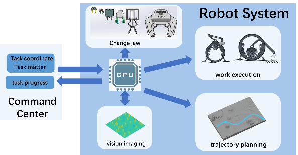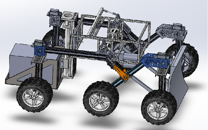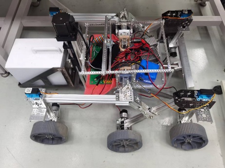 作品介绍:针对月表地形复杂和月球熔岩管道探测难点,设计了配备有月面地质雷达和推土铲刀的新型六轮月球漫游车HUST-LSO,旨在探索月球熔岩管道地质结构和分布,为月球熔岩管基地建造研究提供原位探测依据。