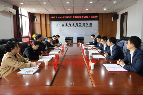 刘华北对中建深装一行的到来表示诚挚的欢迎,他介绍了学院在学科建设、学术科研和学生培养等方面的总体情况。他表示,学院非常重视同行业内龙头企业的合作,积极搭建产学研合作高质量发展平台,希望以传授知识、培养能力和创造价值为核心,推动双方合作共赢。周诚介绍了学院学术科研的前沿动态和主攻方向,他表示企业逐渐成为创新的主体,也希望未来能够在关键技术研发和成果转发方面进一步推进合作。