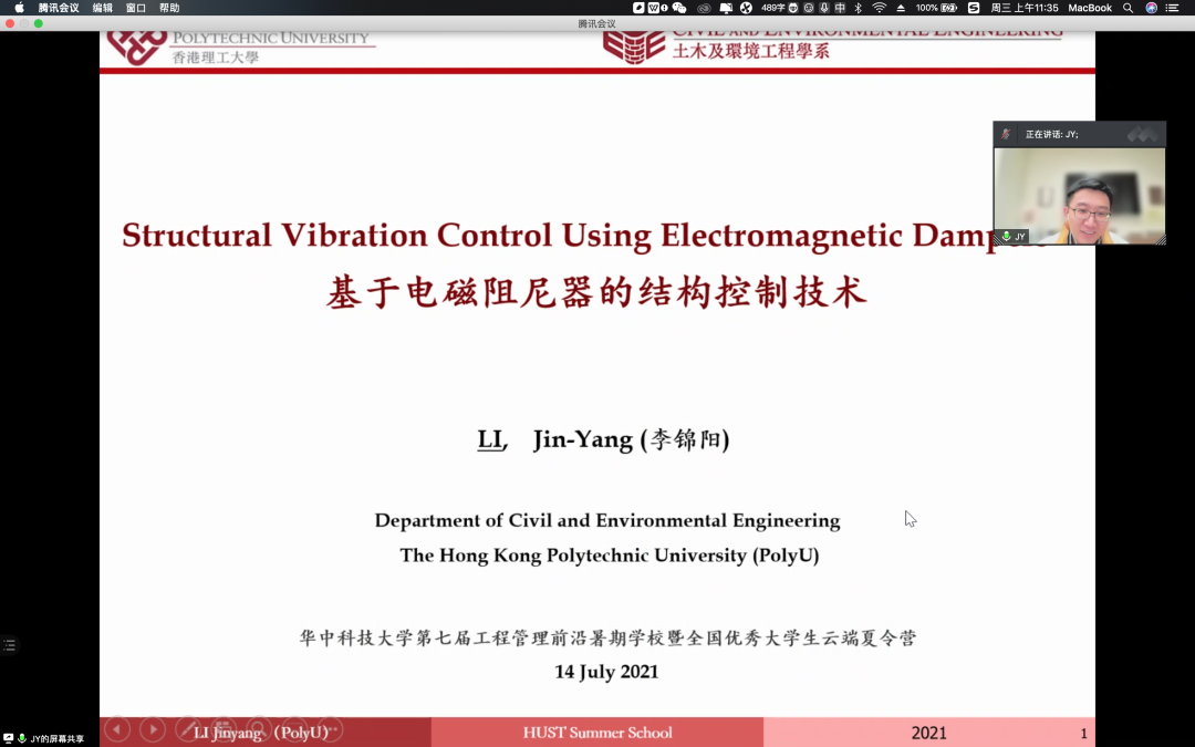 香港理工大学的李锦阳博士后带来题目为“基于电磁阻尼器的结构控制技术”的报告。