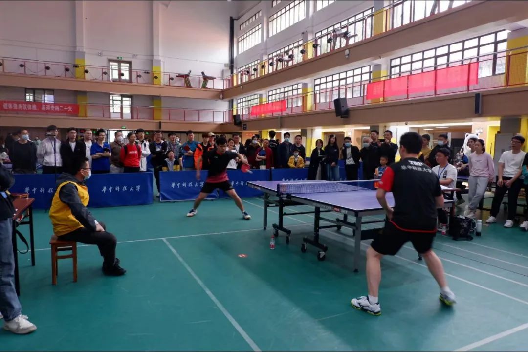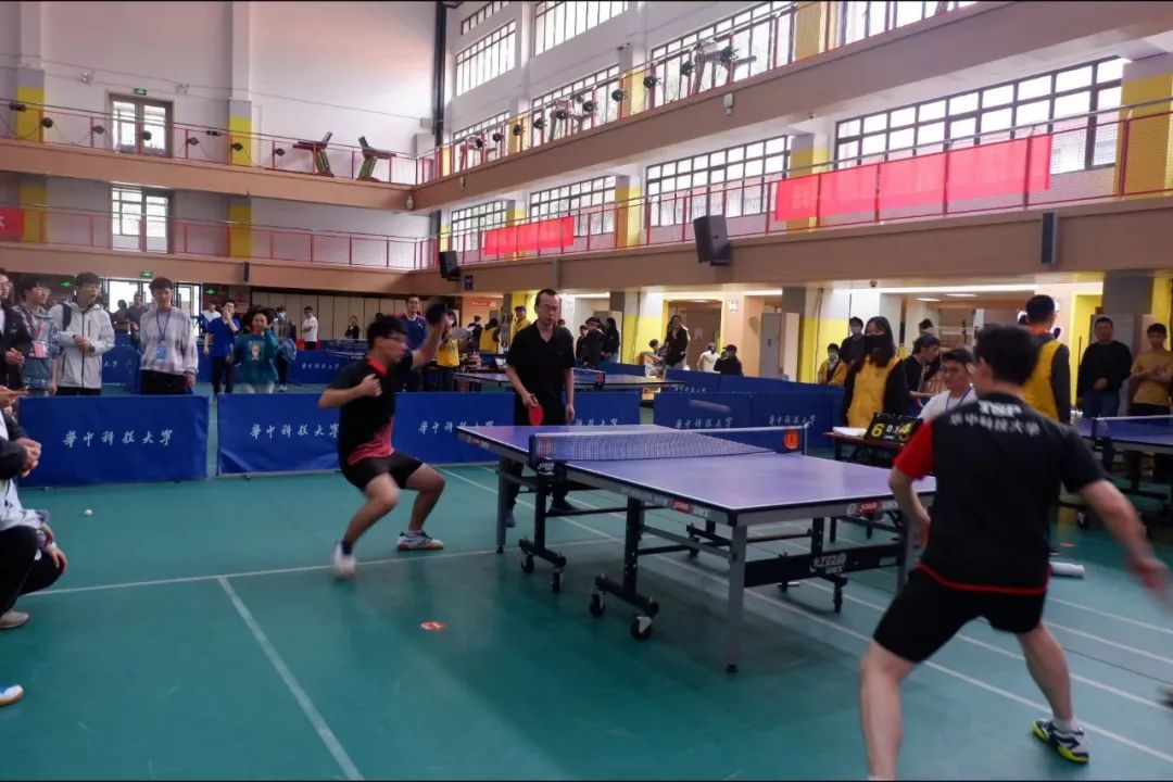 第一场男单对决,我院派出了战力扛把子申嘉伟选手,作为学校乒乓球队队长的他没过几分钟就以迅雷不及掩耳之势直接2:0拿下了比赛。虽然随后的第二场女单比赛中,我院选手很遗憾地败下阵来,但在师生双打和男单2中,王综轶老师和谈晓军老师2:0战胜了对手,以出色的表现奠定了胜局。最终,本场比赛以总比分3:2取胜。