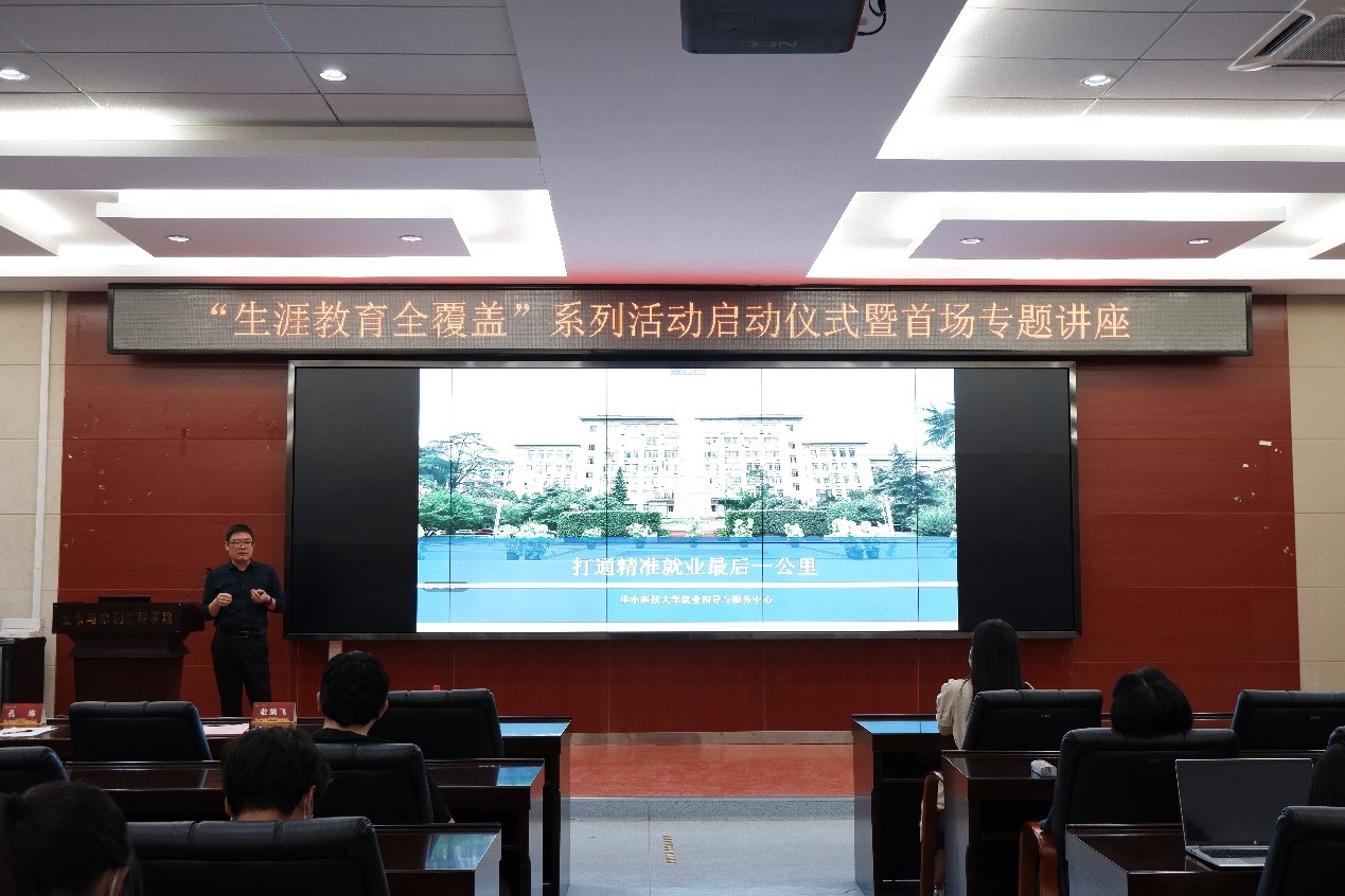 校学生工作部就业指导与服务中心主任敬鹏飞老师为同学们带来了“打通精准就业最后一公里”的专题讲座。