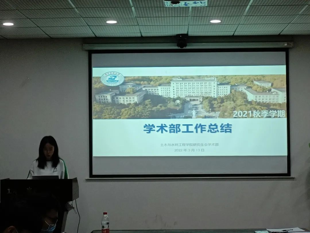 会议第二项,五个部门负责人分别对秋季学期的工作进行了总结报告。在上学期的工作中,办公室继续发扬“高效、务实、严谨、创新”的工作作风,注重研究生德育培养工作,开展“研习”品牌活动,发挥德育学分抓手作用。文体部开展精彩的文体活动,为同学们丰富研究生课余生活添砖加瓦。学术部“内外兼修”,对外开展数场学术交流活动,对优秀榜样采访宣传;对内采取分工轮换,重视个人成长需求,定期反思,在反思中成长。职宿部重点建立了较为完善的权益诉求收集与反馈机制,将同学们的权益需求实时反馈、落实落地。新媒体中心更新公众号栏目,在狠抓推文质量的同时,加强公众号与同学们的互动,为同学们带来优质的宣传内容。