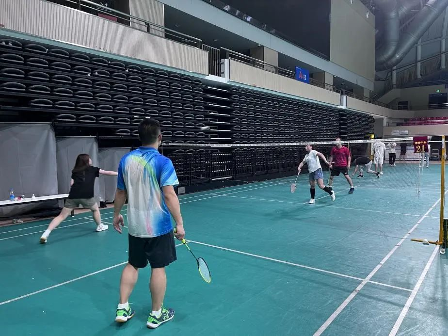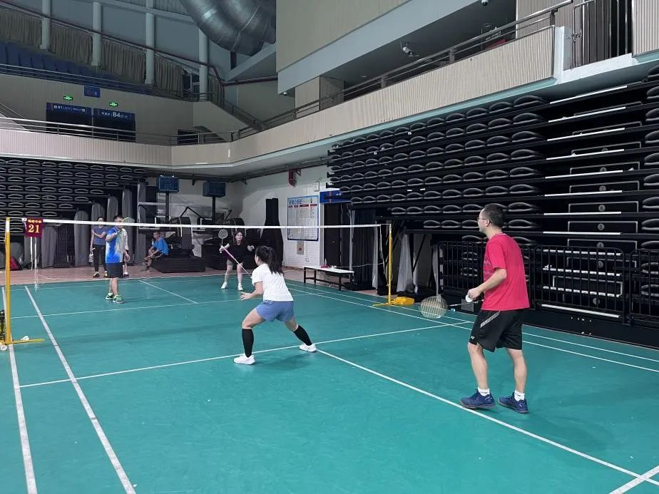 此次比赛在西边体育馆羽毛球场举办,比赛九点开始签到,工作人员早早的就到了体育馆布置场地,搬运所需物资。此次趣味赛设有铲球、发球入桶、颠球、双人对打、颠球入桶、球拍接力等趣味项目,以及男单,女单,混双,男单和女双五个项目的对抗赛。
