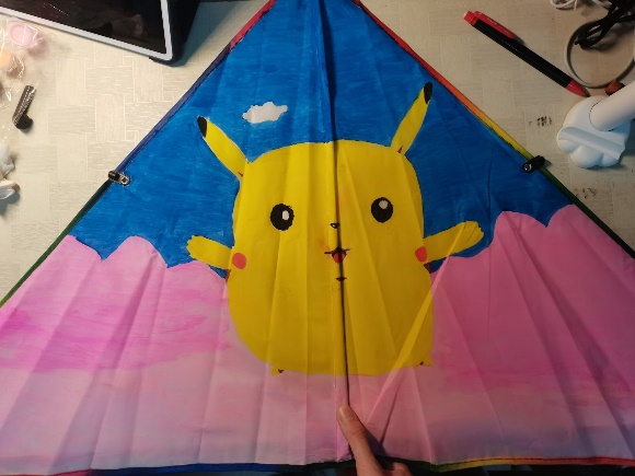 风筝的主体是张开双臂的皮卡丘,