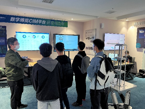 2022年11月20日下午,威廉williamhill30余名大一学生在学院党委副书记何春、辅导员丁琪皓的带领下走进国家数字建造技术创新中心。在中心展厅,数字建造与工程管理系老师和博士生向同学们详细讲解了国家数字建造技术创新中心建设进展,以及在数字化设计与CIM、智能感知与工程物联网、智能工程装备与建造机器人、工程大数据与智能服务等方面的智能建造技术最新研究成果。