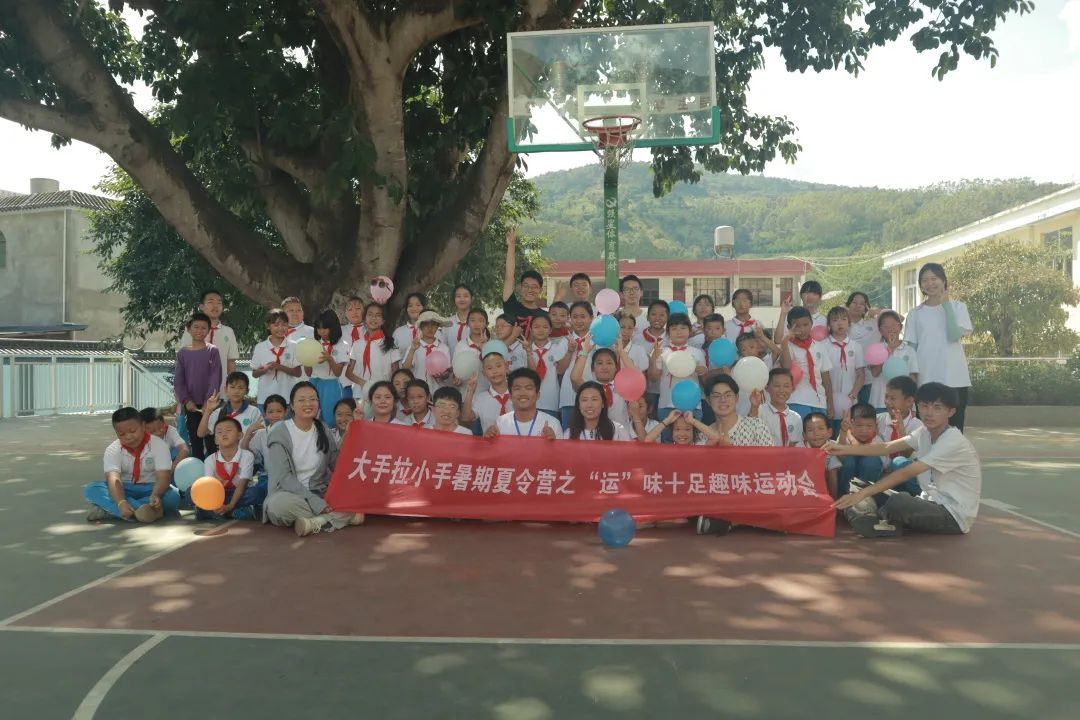 2022年8月16日上午8:30,同学们在操场集合完毕,主持人简短地强调安全、纪律等问题后,大手拉小手暑期夏令营趣味运动会正式开幕。