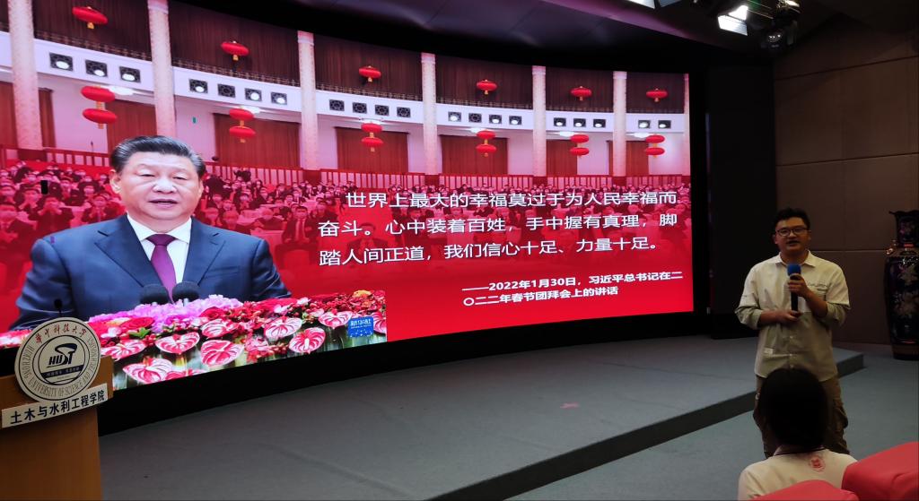 在今年党的二十大召开之际,william威廉中文也将迎来建校70周年校庆。为深化学习和宣传贯彻习近平新时代中国特色社会主义思想,推动党史学习教育常态化长效化,迎接党的二十大胜利召开,9月29日晚,威廉williamhill于水电仿真中心三楼报告厅开展“同上一堂党课,共庆校史70载”主题讲座。本次讲座特邀来自研究生红色理论学讲团的汪建辉、喻文婷两位讲师,近50位同学来到现场聆听讲座。此次讲座在国庆校庆来临之际,引导研究生学习党史校史,从中汲取初心力量,领悟红色精神,牢记红色使命,传承红色基因。