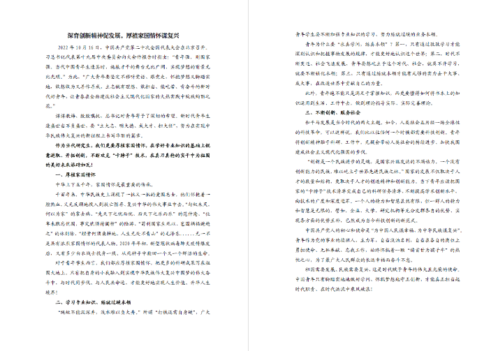 《深育创新精神促发展,厚植家国情怀谋复兴》(许宵 武汉大学)