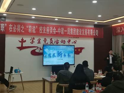接下来总部人力资源部招聘主办吴承锴从几个方面给大家介绍了一局发展公司的总体情况,一是一局发展公司在建筑施工单位的地位;二是公司的各项业务;三是公司的市场板块;四是公司的培养体系与福利。