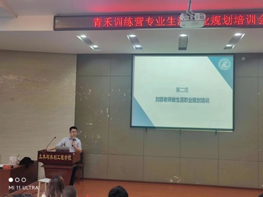刘颉老师就专业选择等为大家做职业生涯职业规划培训。刘老师结合自身经历,向在座同学介绍了专业选择的问题,通过分析土木水利类相关专业的优缺点,指出土木水利专业在升学和就业以及其他选择的方法。他以往届同学在大一时转出水电专业后,考研考回水电专业的故事为例,提醒我们要在对所选专业有充分了解之后谨慎选择专业,要能脱离“当局者迷”的错误状态,站在一个更加客观的角度分析自身与所选专业的关系,从而正确做出自身的职业生涯规划。