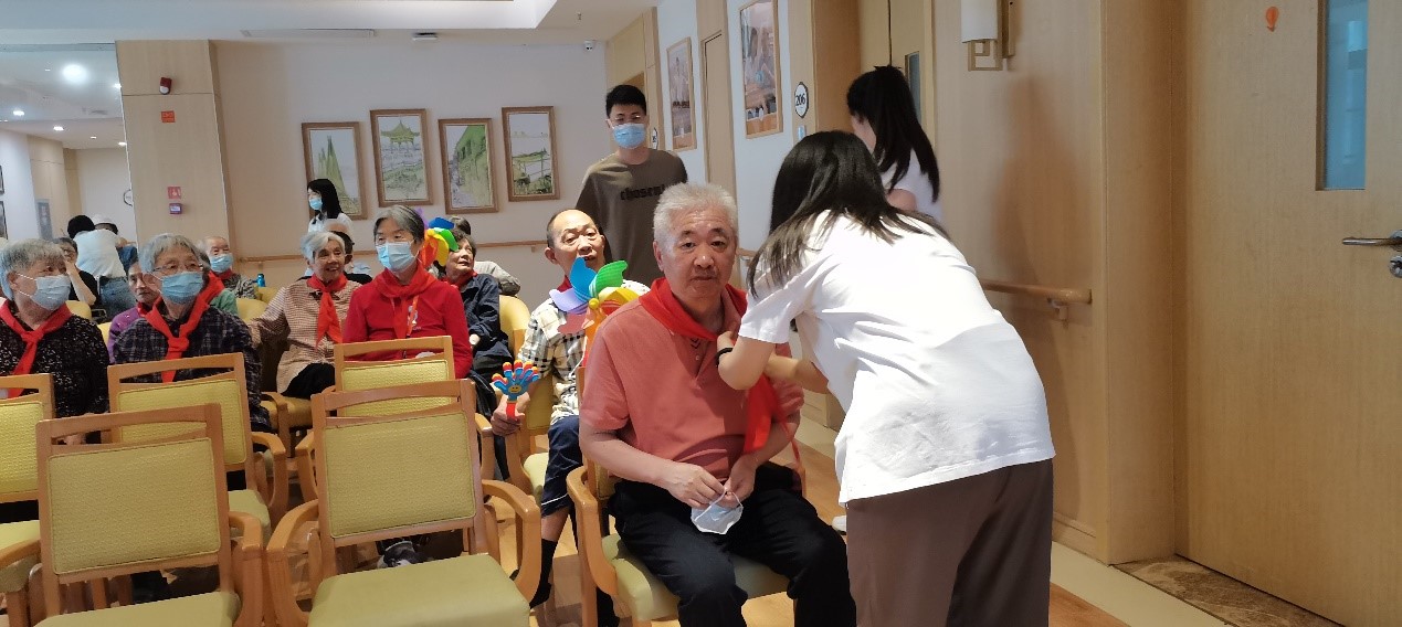 为了保证老人们的安全,志愿者们在颐养中心工作人员的指引下做了抗原检测,并在志愿服务的过程中全程佩戴口罩。
